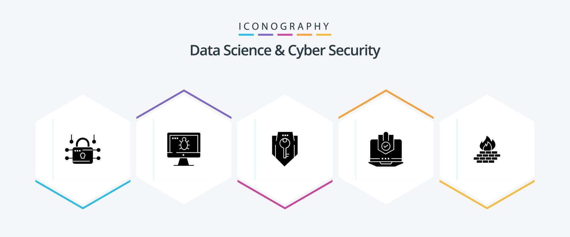 Data Science And Cyber Security 25 Glyph icon pack including protected. internet. access. computer. shield vector
