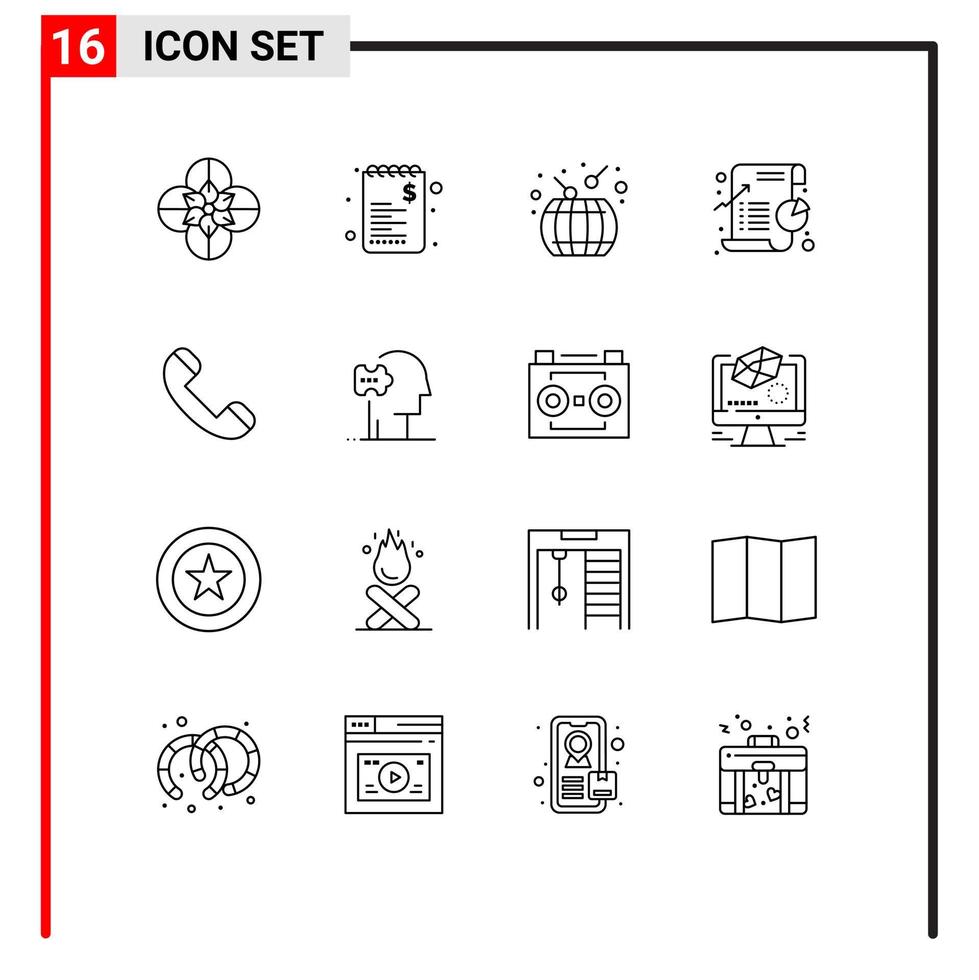 Editable Vector Line Pack of 16 Simple Outlines of call pie asian graph business Editable Vector Design Elements