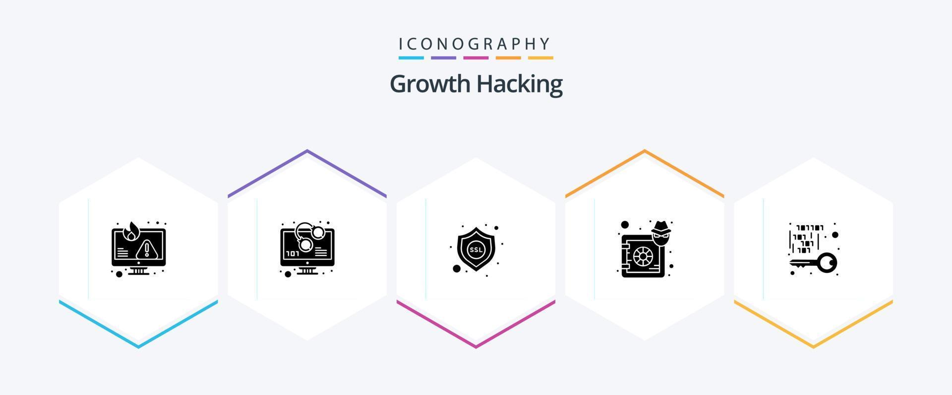 Hacking 25 Glyph icon pack including lock. hacker. warn. deposit. ssl vector
