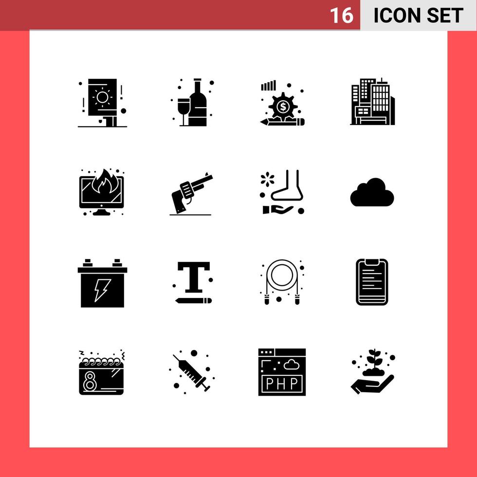 Modern Set of 16 Solid Glyphs and symbols such as lost display analysis process construction architecture Editable Vector Design Elements Free Vector