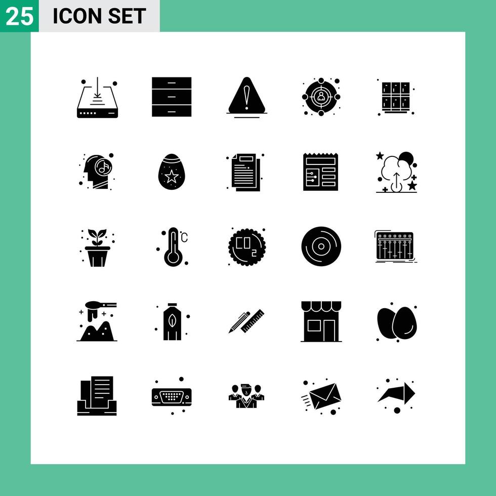 Pack of 25 Modern Solid Glyphs Signs and Symbols for Web Print Media such as locker learn alert target audience Editable Vector Design Elements