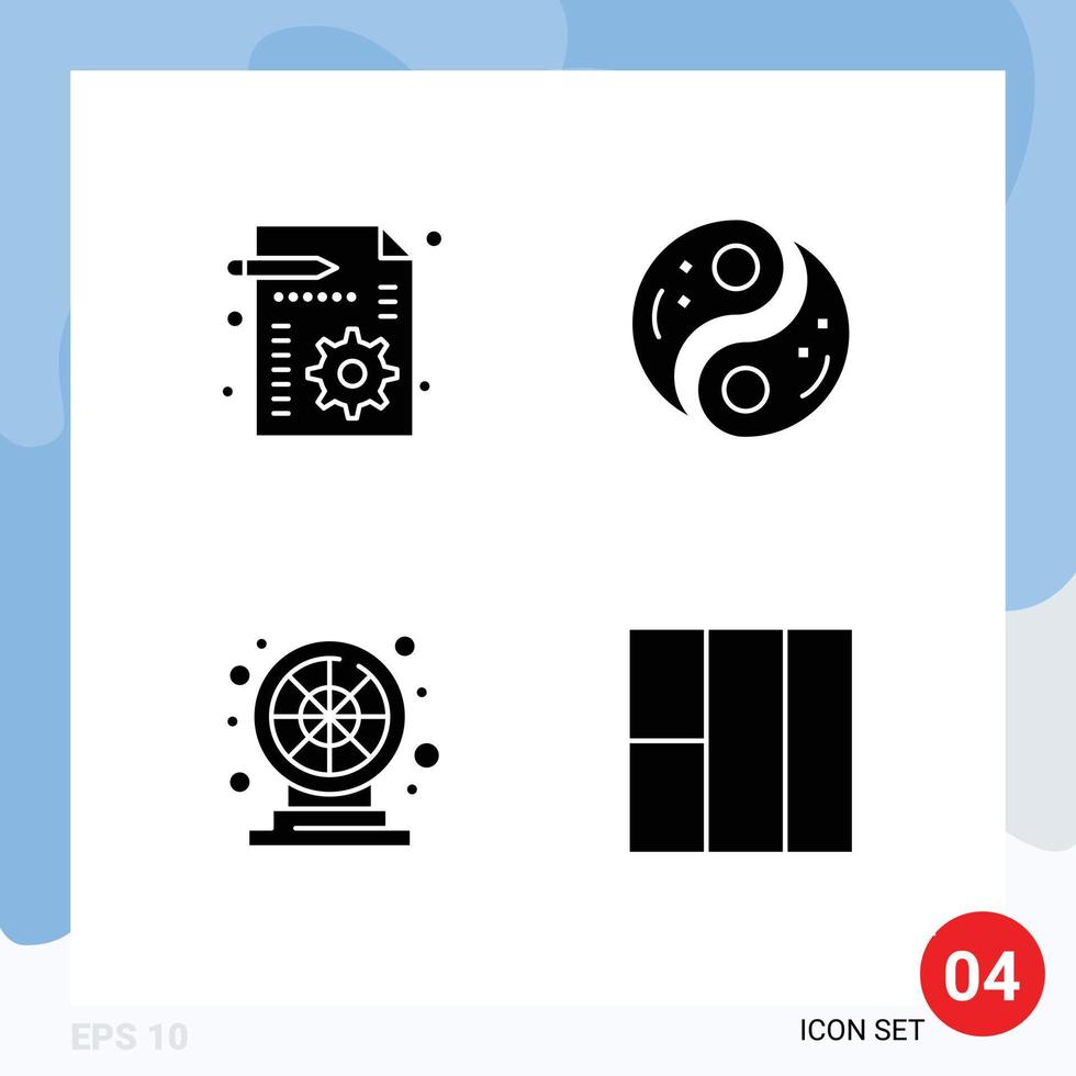 4 Universal Solid Glyph Signs Symbols of business wheel setting unity game Editable Vector Design Elements