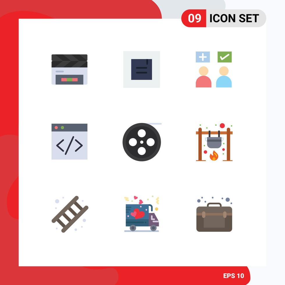 Set of 9 Modern UI Icons Symbols Signs for roll camera education development web Editable Vector Design Elements