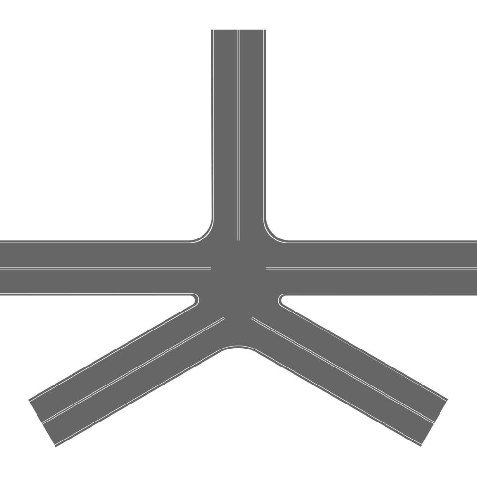 Five ways road junction top view. Highway part with marking isolated on white background. Roadway element for city map Pro Vector