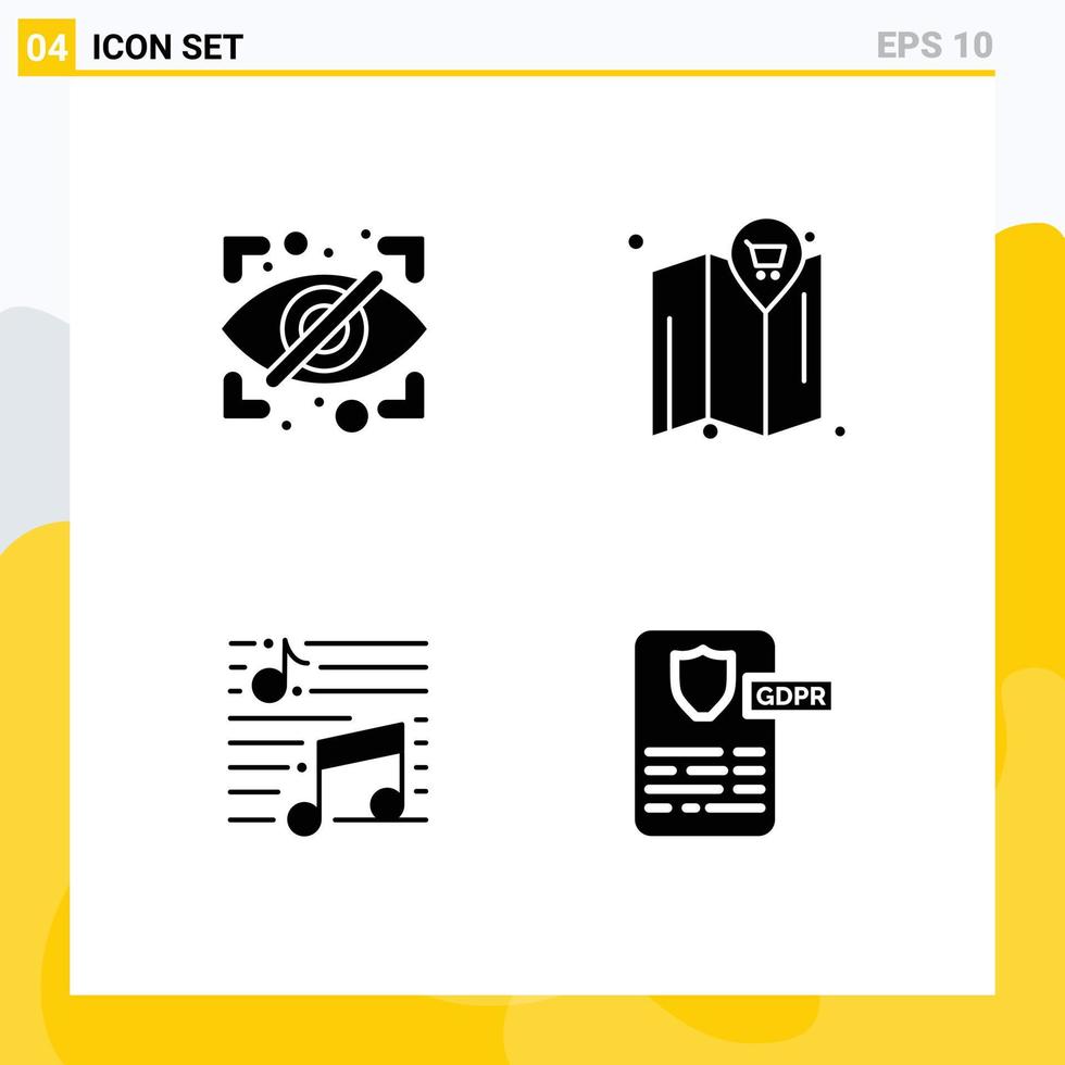 Group of 4 Solid Glyphs Signs and Symbols for block note security cart sound Editable Vector Design Elements Free Vector