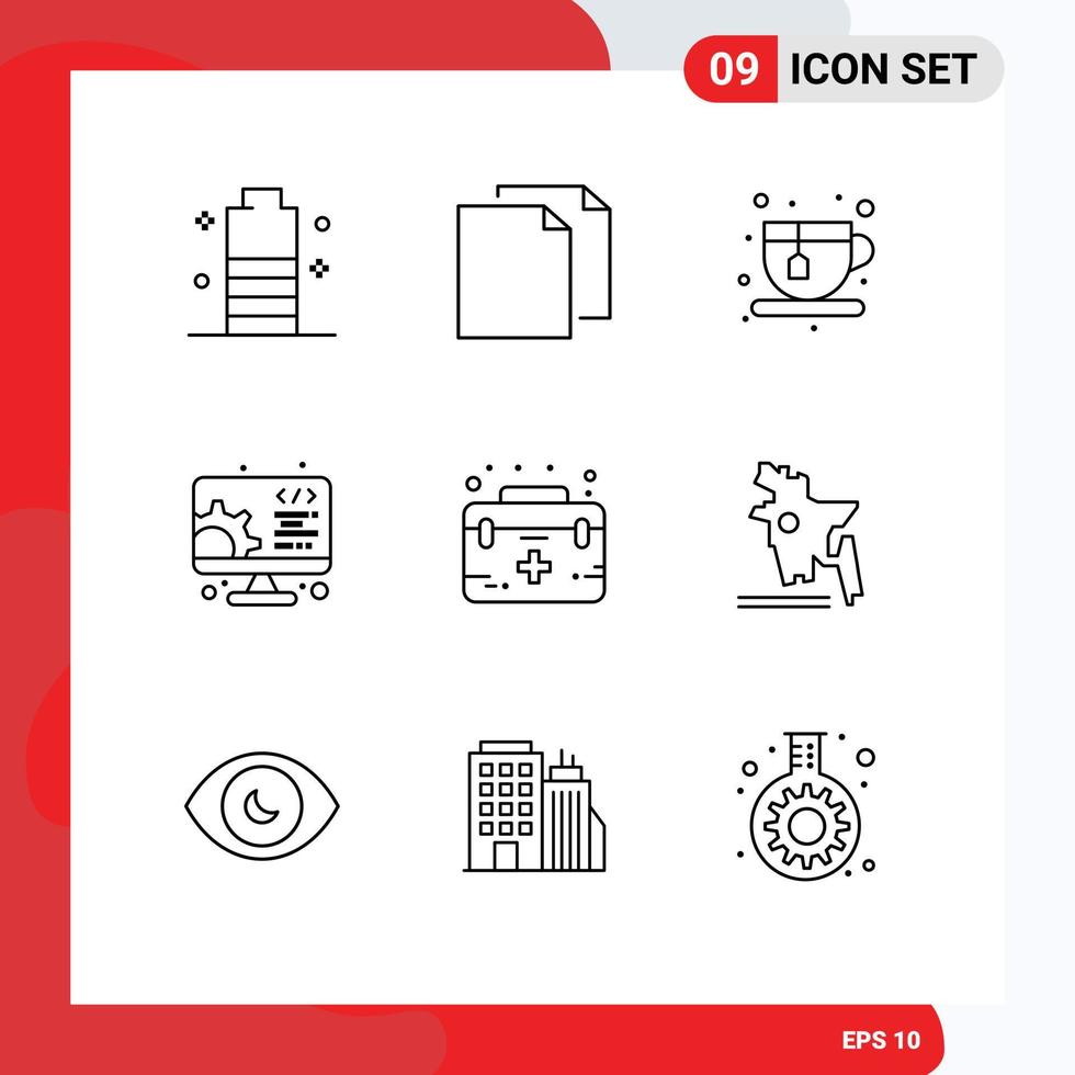 Editable Vector Line Pack of 9 Simple Outlines of case web file setting development Editable Vector Design Elements Free Vector