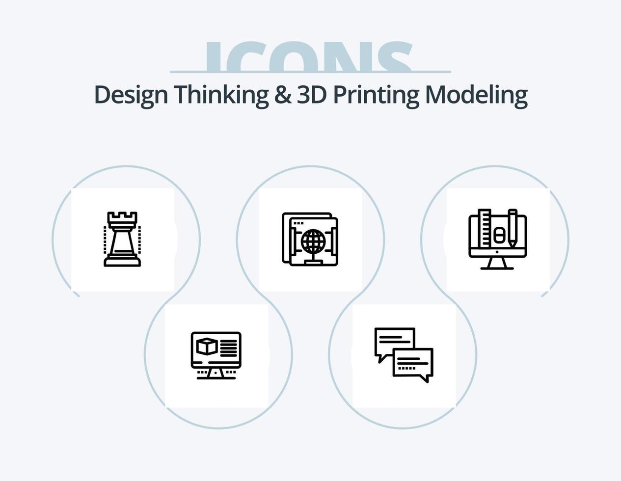 Design Thinking And D Printing Modeling Line Icon Pack 5 Icon Design. education. monitor. film. graph. computer vector