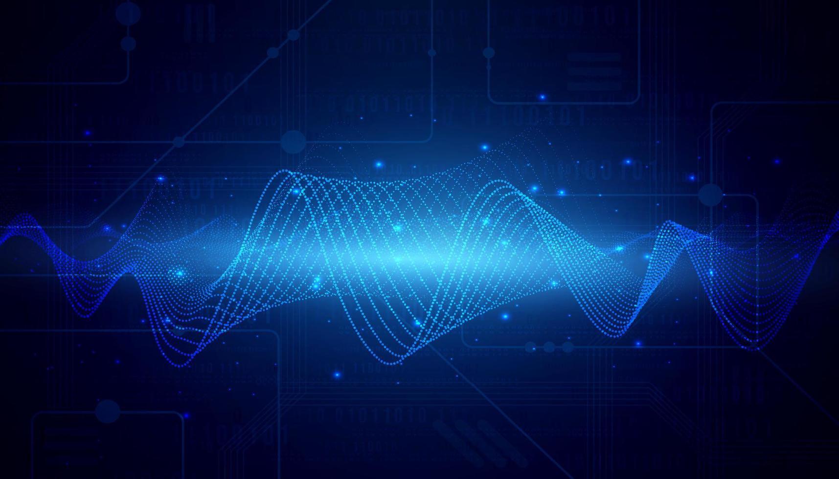 Digital technology data blue background, online cyber media algorithm, abstract wave futuristic circuit tech, innovation future, internet network connection, Ai big data, hi-tech illustration vector Pro Vector