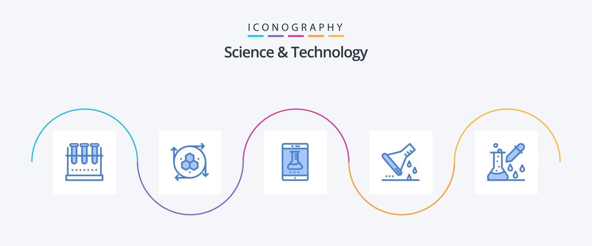 Science And Technology Blue 5 Icon Pack Including sample flask. erlenmeyer flask. modeling tool. chemical flask. smart lab vector