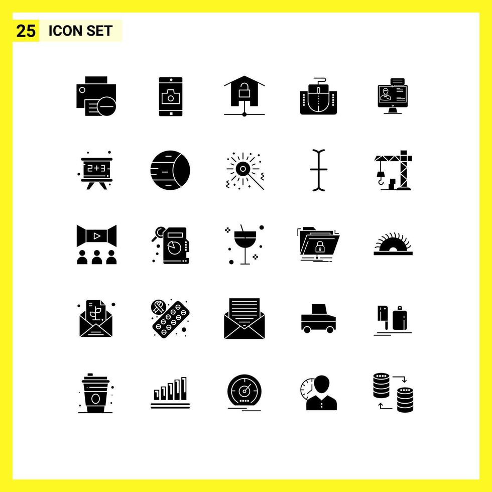 25 Universal Solid Glyphs Set for Web and Mobile Applications computer interface camera mouse smart home Editable Vector Design Elements