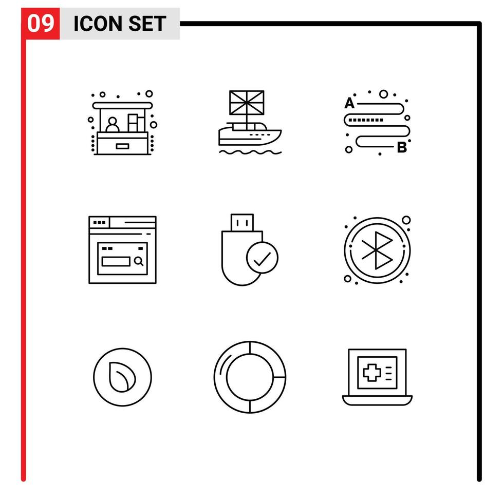 9 Universal Outlines Set for Web and Mobile Applications computers website uk web internet Editable Vector Design Elements
