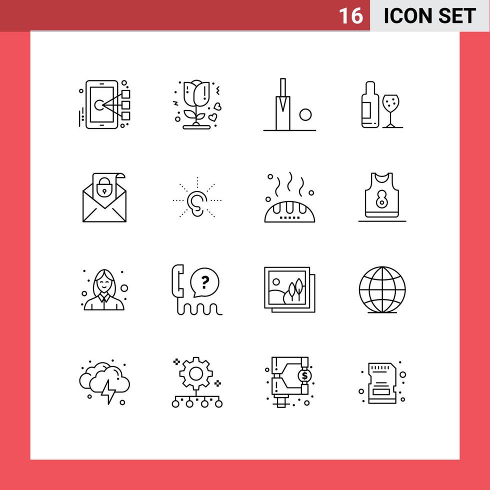 16 Universal Outlines Set for Web and Mobile Applications message mail cricket love bottle Editable Vector Design Elements Free Vector