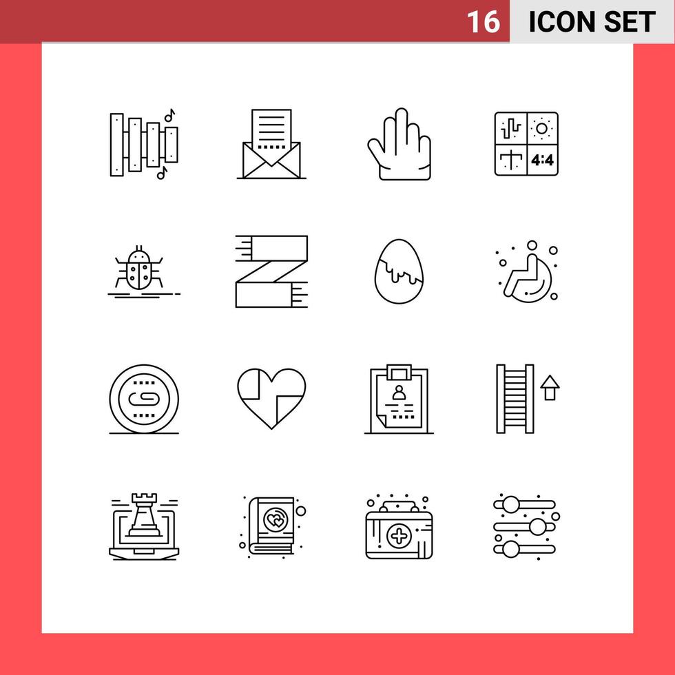 16 User Interface Outline Pack of modern Signs and Symbols of bugs process fingers engineering design Editable Vector Design Elements Free Vector