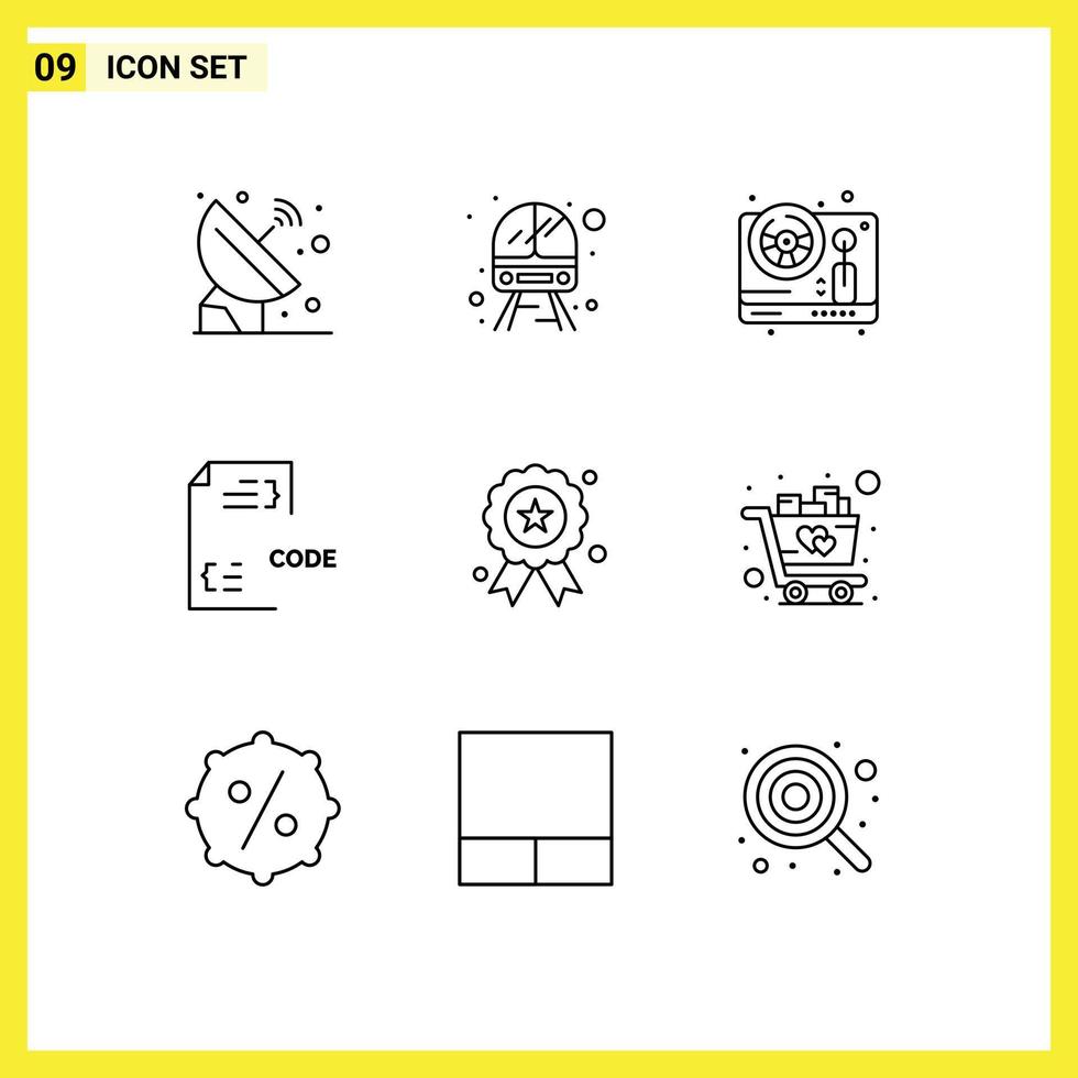 9 User Interface Outline Pack of modern Signs and Symbols of document develop vehicle coding play Editable Vector Design Elements