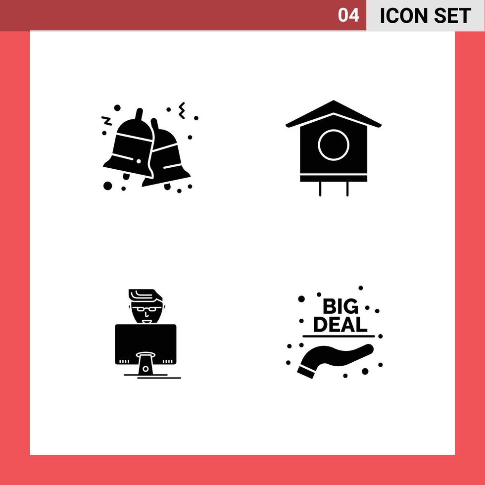 4 User Interface Solid Glyph Pack of modern Signs and Symbols of bell user jingle bird house programmer Editable Vector Design Elements