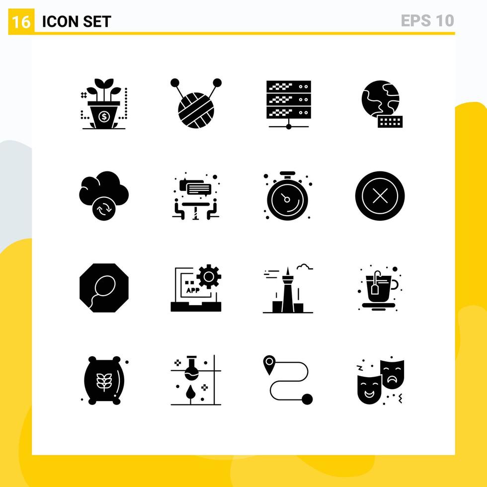 16 Universal Solid Glyphs Set for Web and Mobile Applications clock meeting world interview data Editable Vector Design Elements