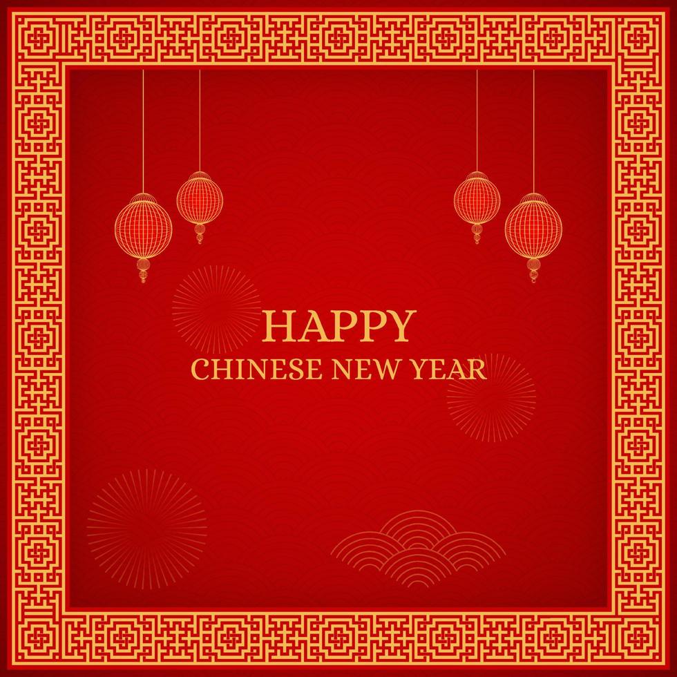 Happy Chinese New Year Background Design With Chinese Pattern Brushes Border Frame and Chinese Lantern Pro Vector