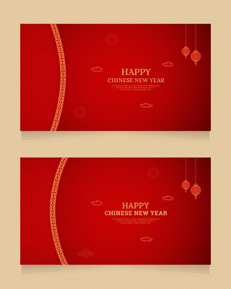 Happy Chinese New Year Red Background Design With Chinese Pattern Brushes Border and Lanterns Pro Vector
