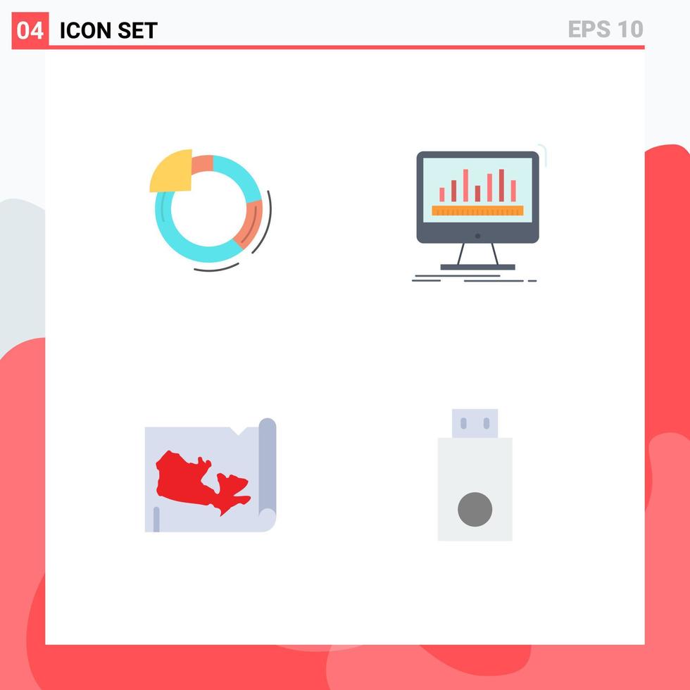 Editable Vector Line Pack of 4 Simple Flat Icons of graph map chart dashboard canada Editable Vector Design Elements