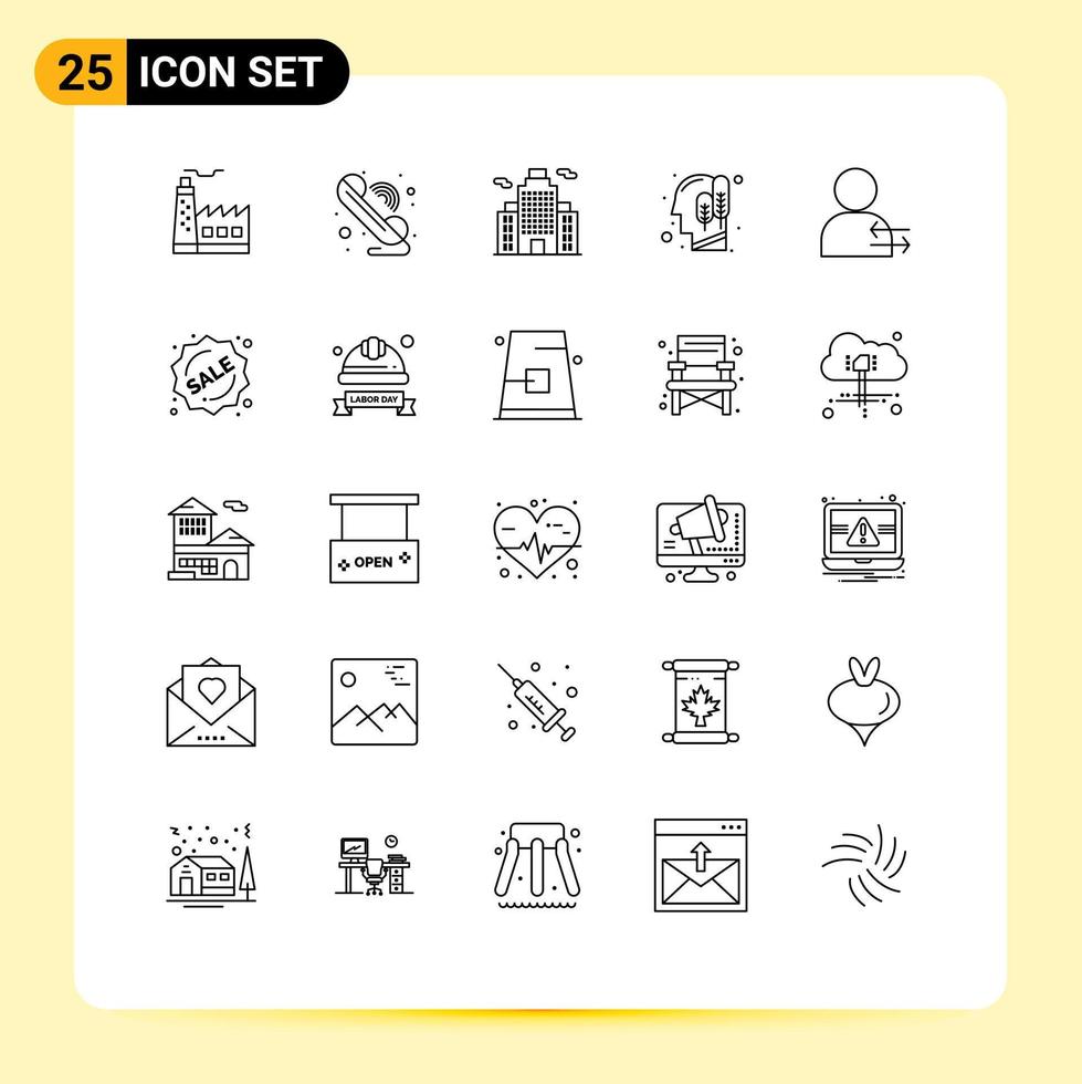 25 Thematic Vector Lines and Editable Symbols of left man building logical head Editable Vector Design Elements