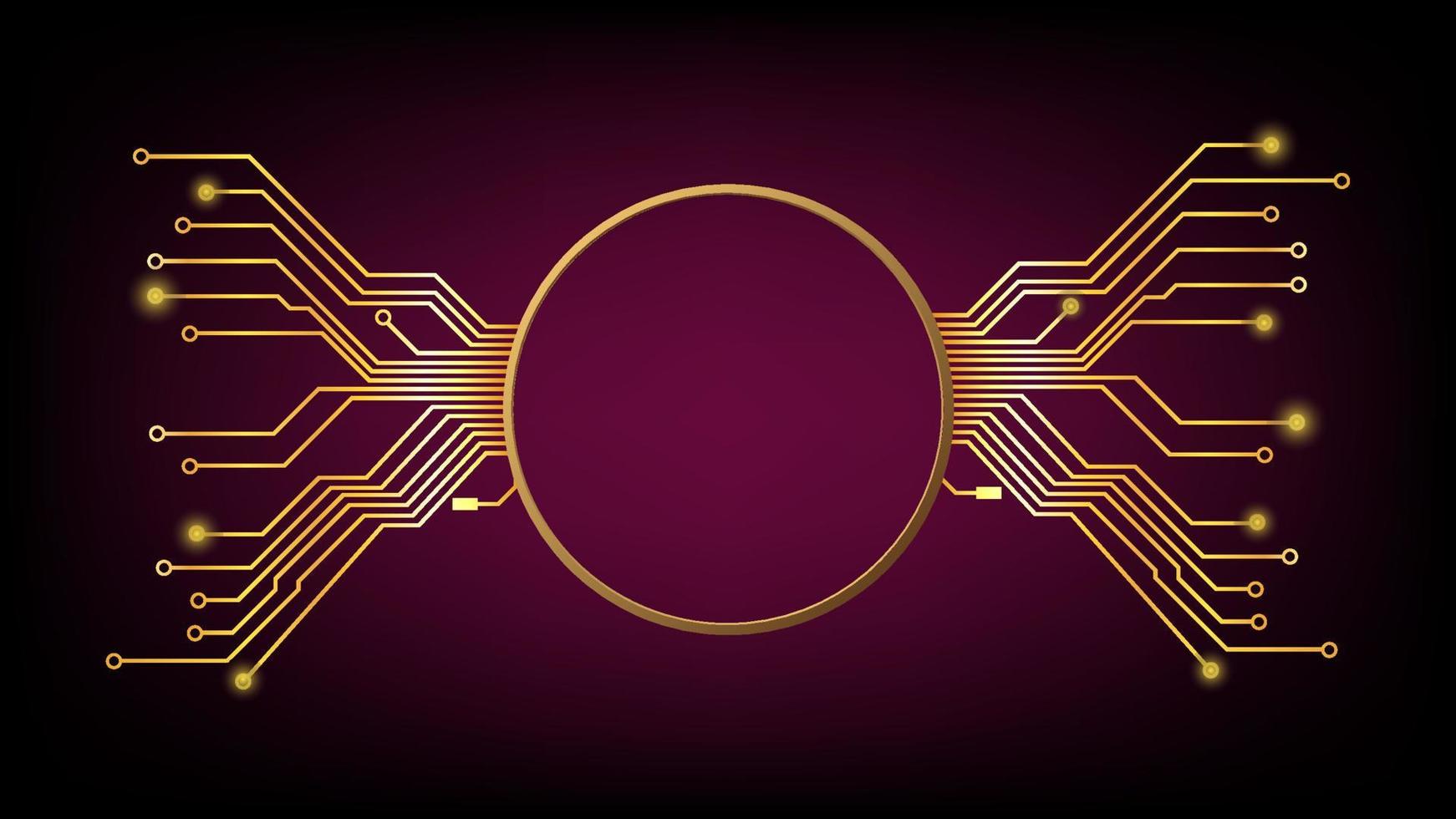 Design element in techno style with copy space gold circle with PCB tracks. Template for website or banner. Vector illustration. Pro Vector