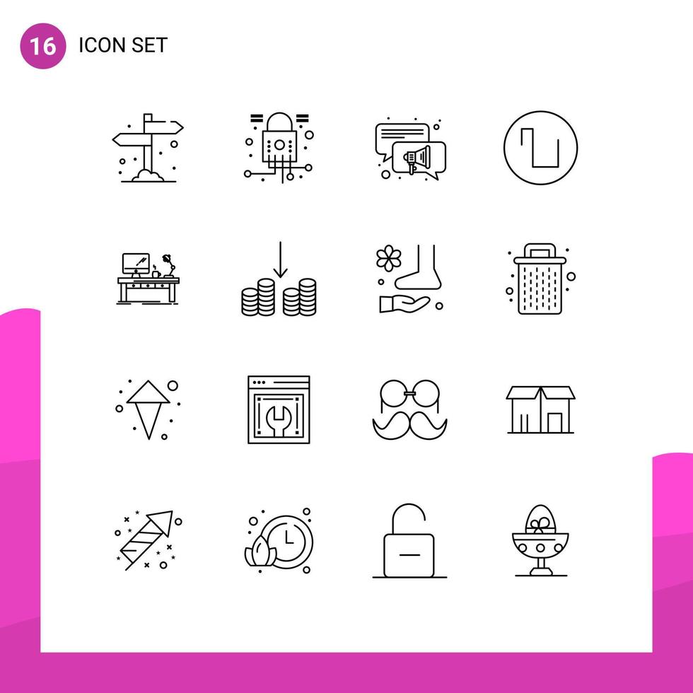 16 User Interface Outline Pack of modern Signs and Symbols of desk business conversation workplace square Editable Vector Design Elements Free Vector