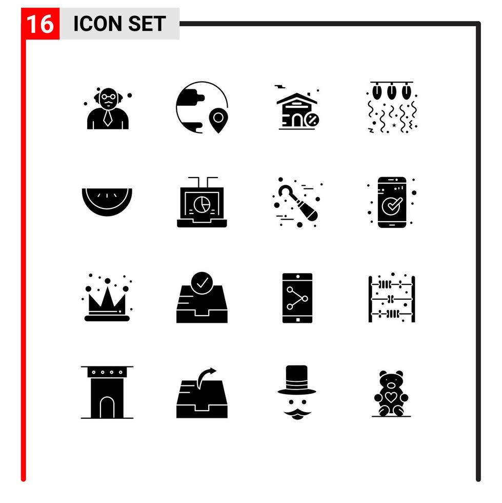 Pictogram Set of 16 Simple Solid Glyphs of watermelon string building love lamp Editable Vector Design Elements Free Vector