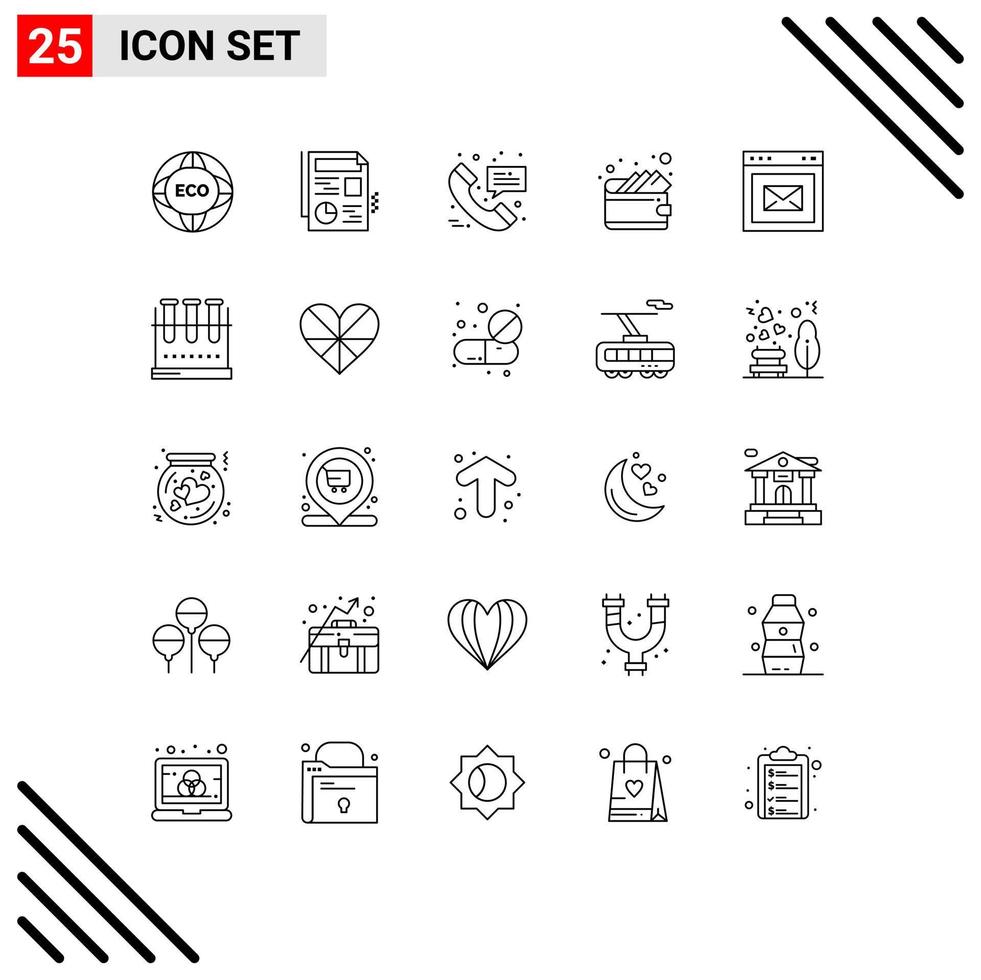 Editable Vector Line Pack of 25 Simple Lines of webpage browser call wallet cash Editable Vector Design Elements