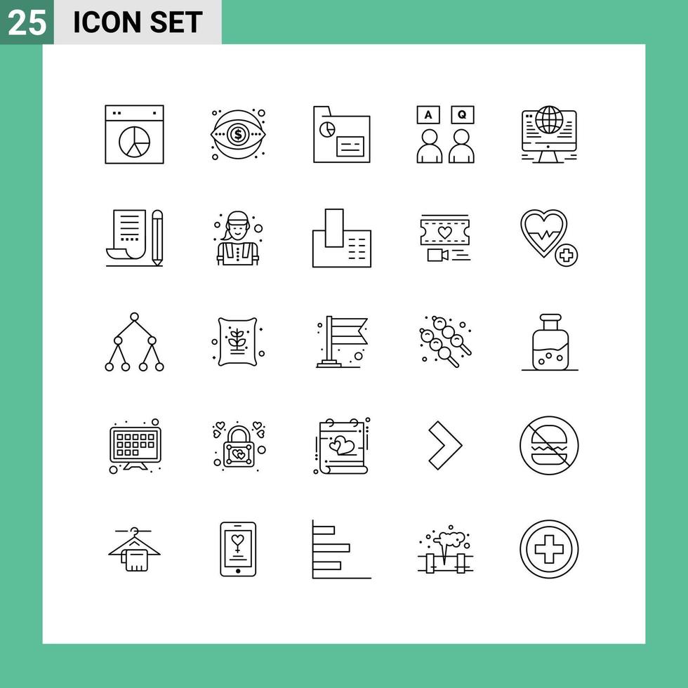 25 User Interface Line Pack of modern Signs and Symbols of qa education money answers marketing Editable Vector Design Elements