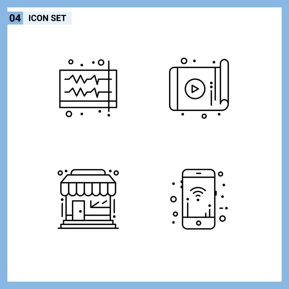 4 User Interface Line Pack of modern Signs and Symbols of audio app volume tablet market store Editable Vector Design Elements
