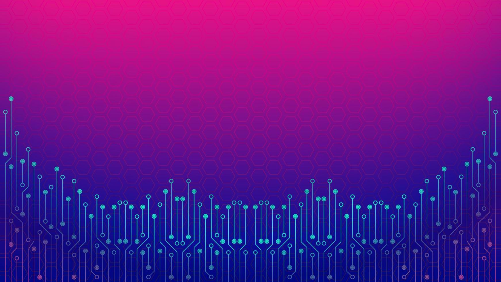 Cyberpunk Circuit Board Background Design Template. Abstract Technology Vector Illustration with Hexagon Texture. Sci-Fi PCB Trace Data Transfer Design Concept. Blue Pink Gradient Pro Vector