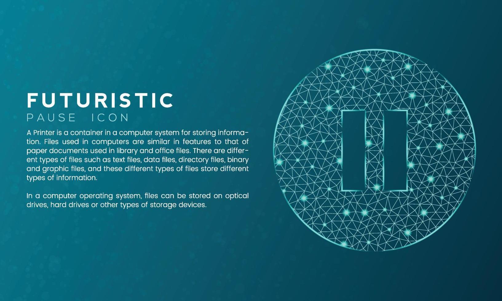 Blue futuristic play and pause icon concept with polygon node connected dots and neon effect Pro Vector