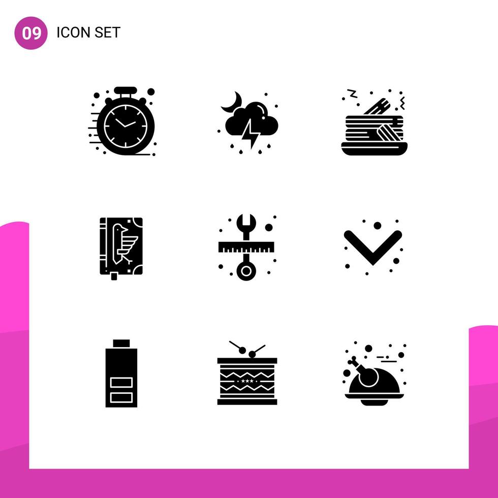 Modern Set of 9 Solid Glyphs and symbols such as tool edict cake declaration codex Editable Vector Design Elements