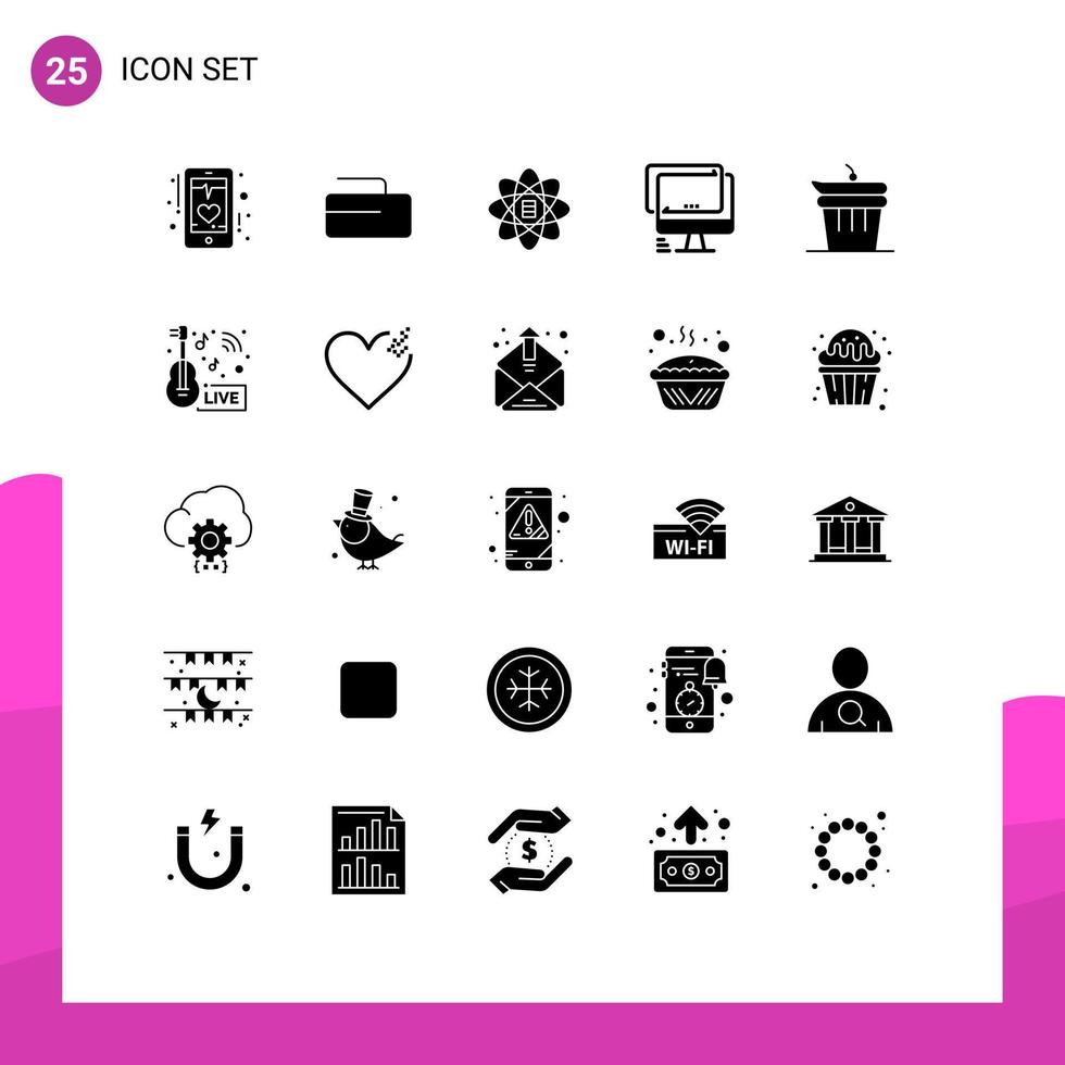 Set of 25 Vector Solid Glyphs on Grid for and imac data device computer Editable Vector Design Elements Free Vector