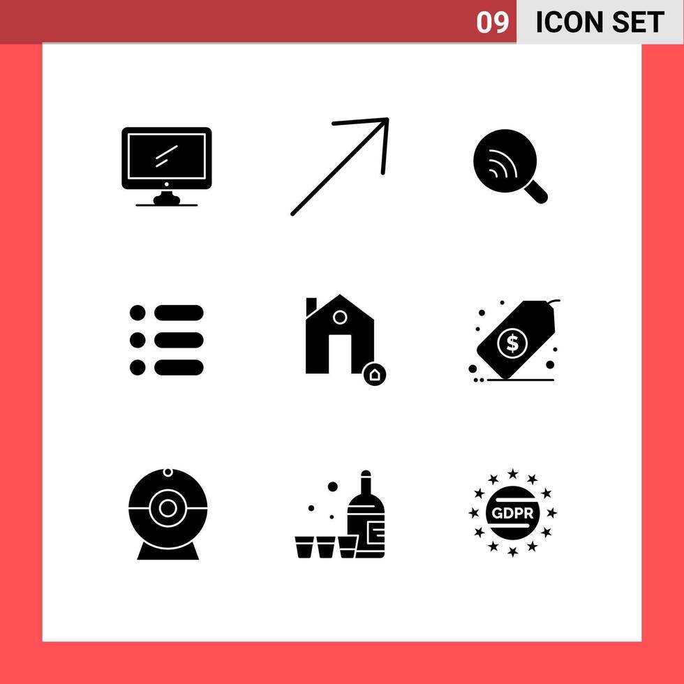 9 Solid Glyph concept for Websites Mobile and Apps estate write search text list Editable Vector Design Elements