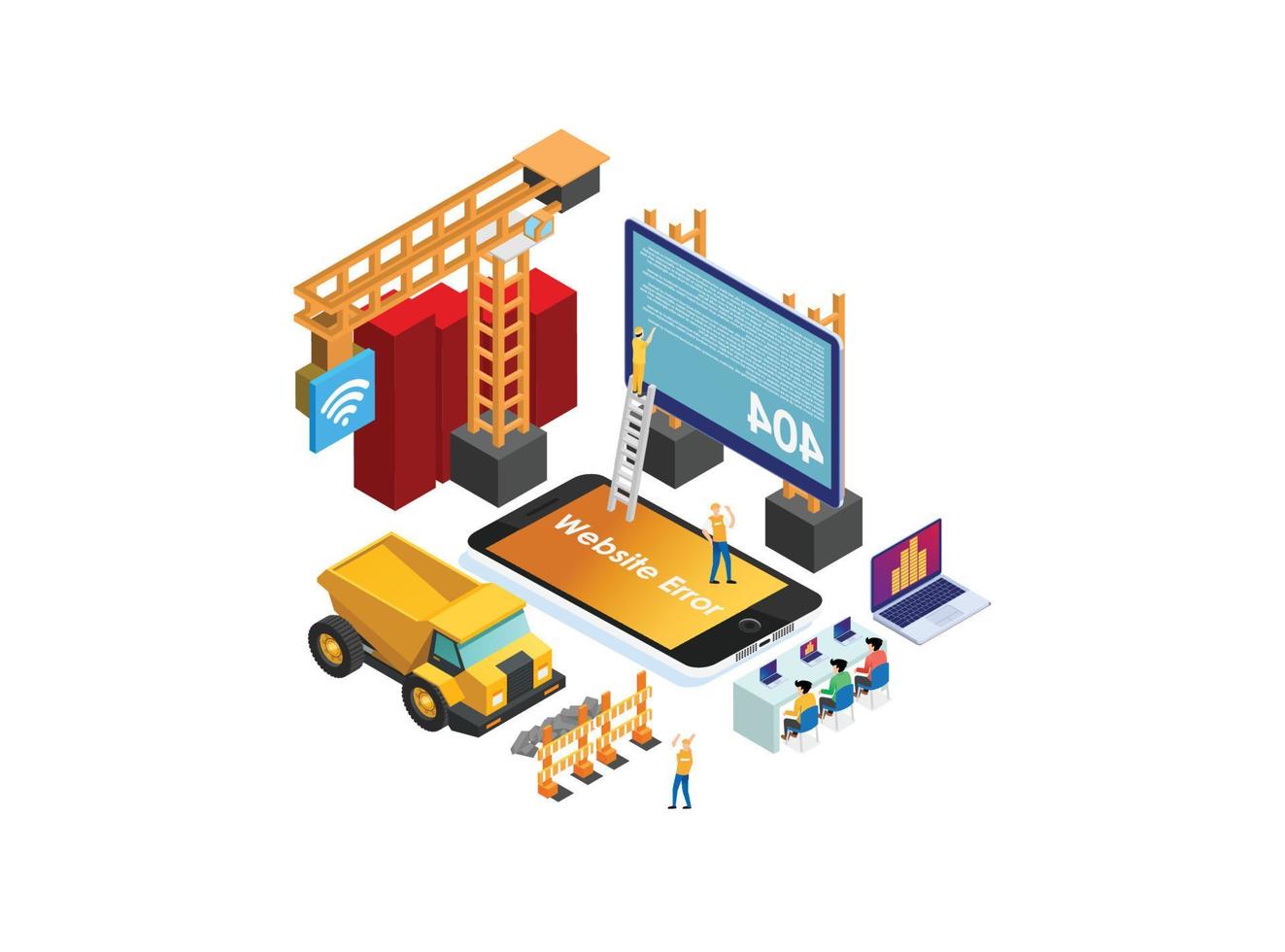 Modern Isometric Error 404 Under Construction Page Illustration in White Isolated Background With People and Digital Related Asset Pro Vector