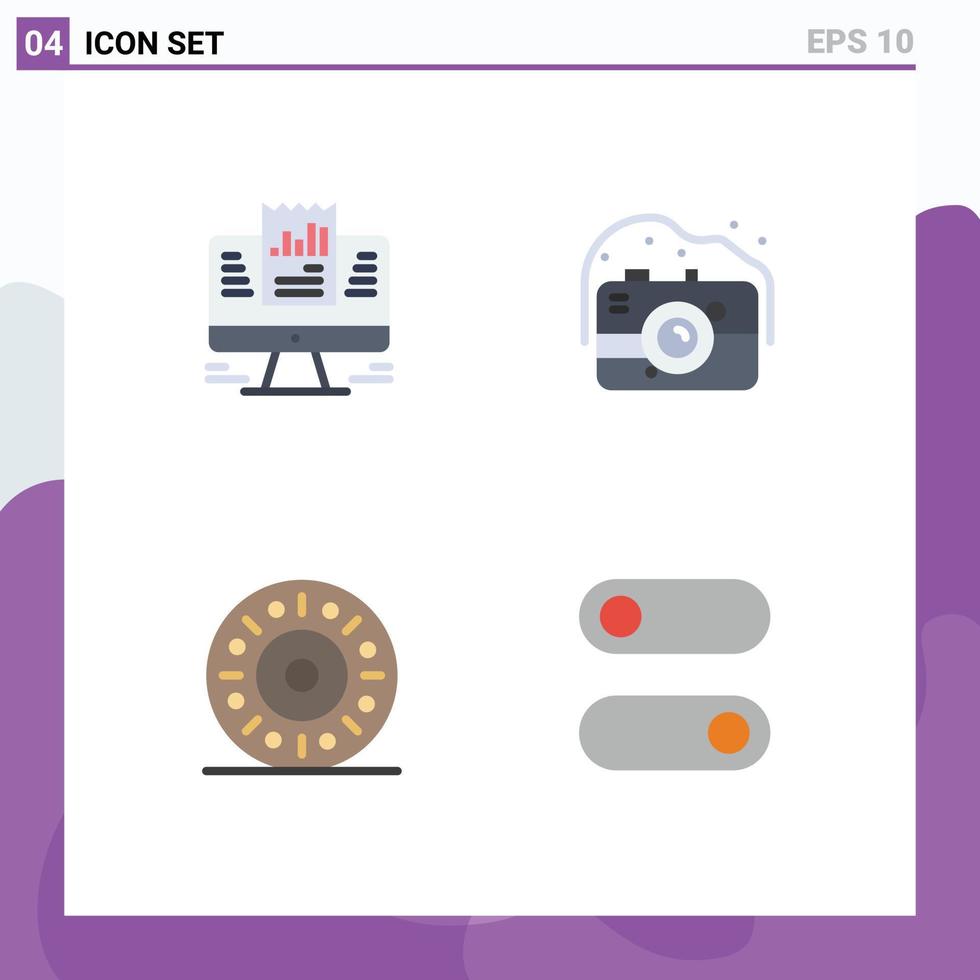 Mobile Interface Flat Icon Set of 4 Pictograms of report donut computer old food Editable Vector Design Elements