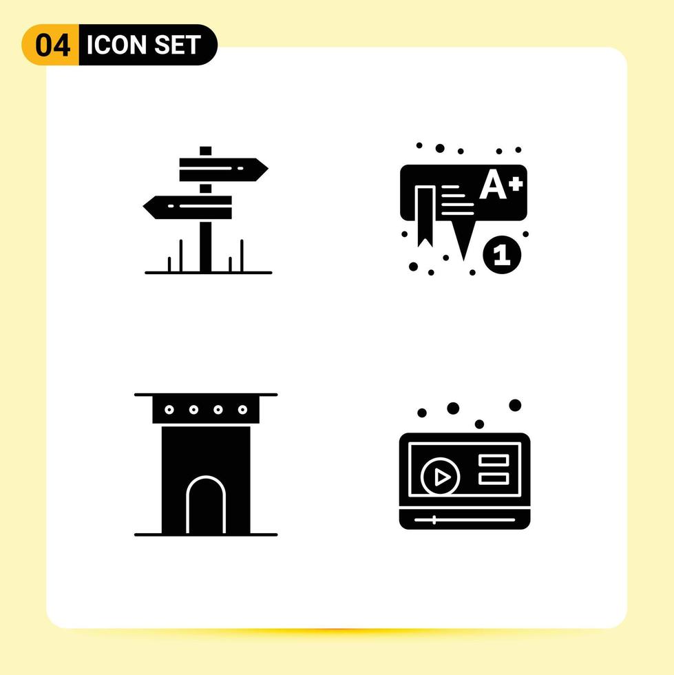 Set of 4 Vector Solid Glyphs on Grid for direction architecture room learning historic Editable Vector Design Elements