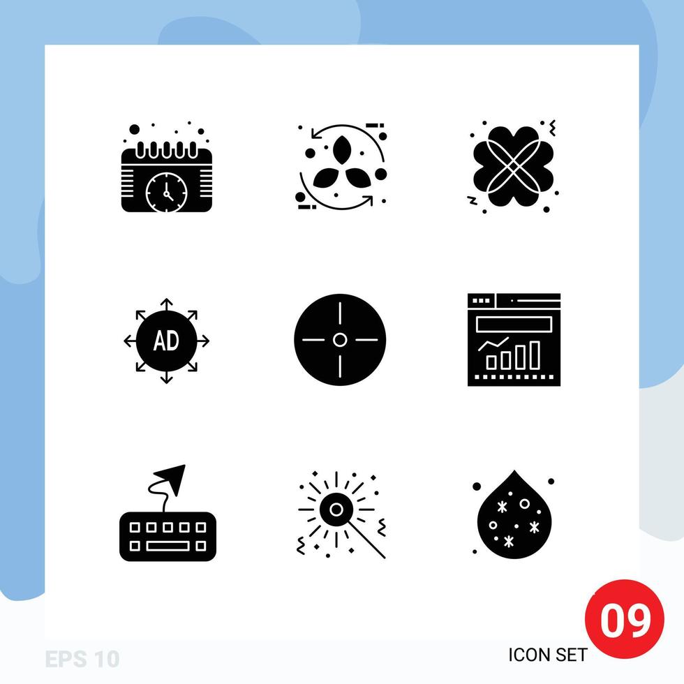 Set of 9 Vector Solid Glyphs on Grid for devices advertising submission recycle submission date Editable Vector Design Elements Free Vector