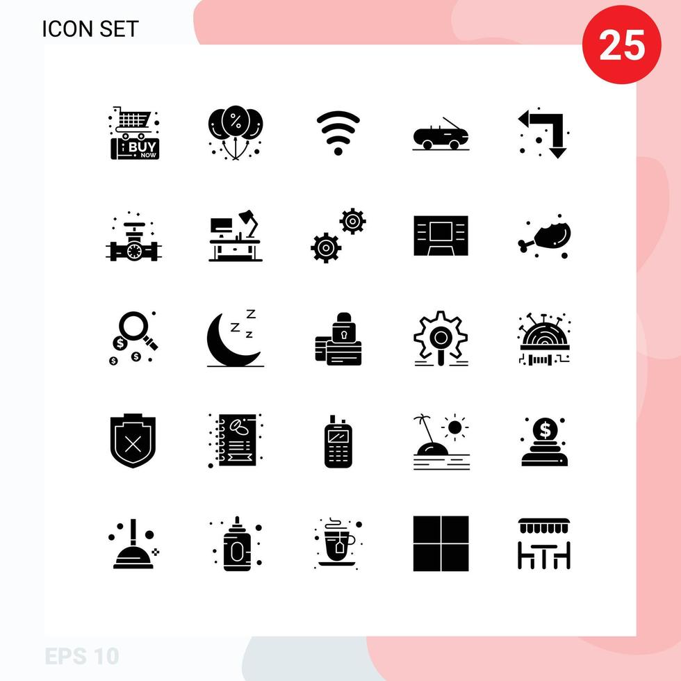 25 Universal Solid Glyphs Set for Web and Mobile Applications gauge up left wifi arrows car Editable Vector Design Elements