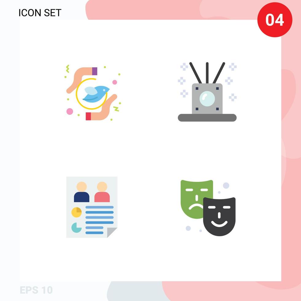 Set of 4 Modern UI Icons Symbols Signs for equality data peace relaxing paper Editable Vector Design Elements