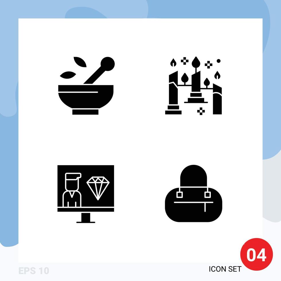 Pack of 4 Modern Solid Glyphs Signs and Symbols for Web Print Media such as hospital develop soup flame programmer Editable Vector Design Elements