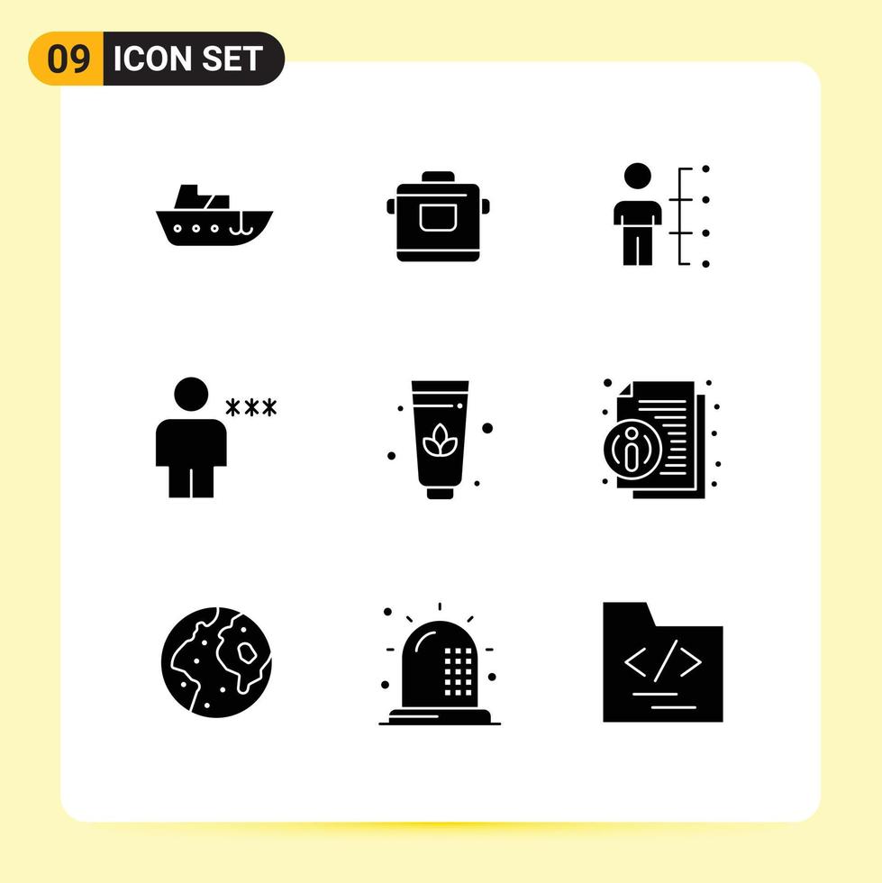 9 Universal Solid Glyphs Set for Web and Mobile Applications human block skills avatar man Editable Vector Design Elements