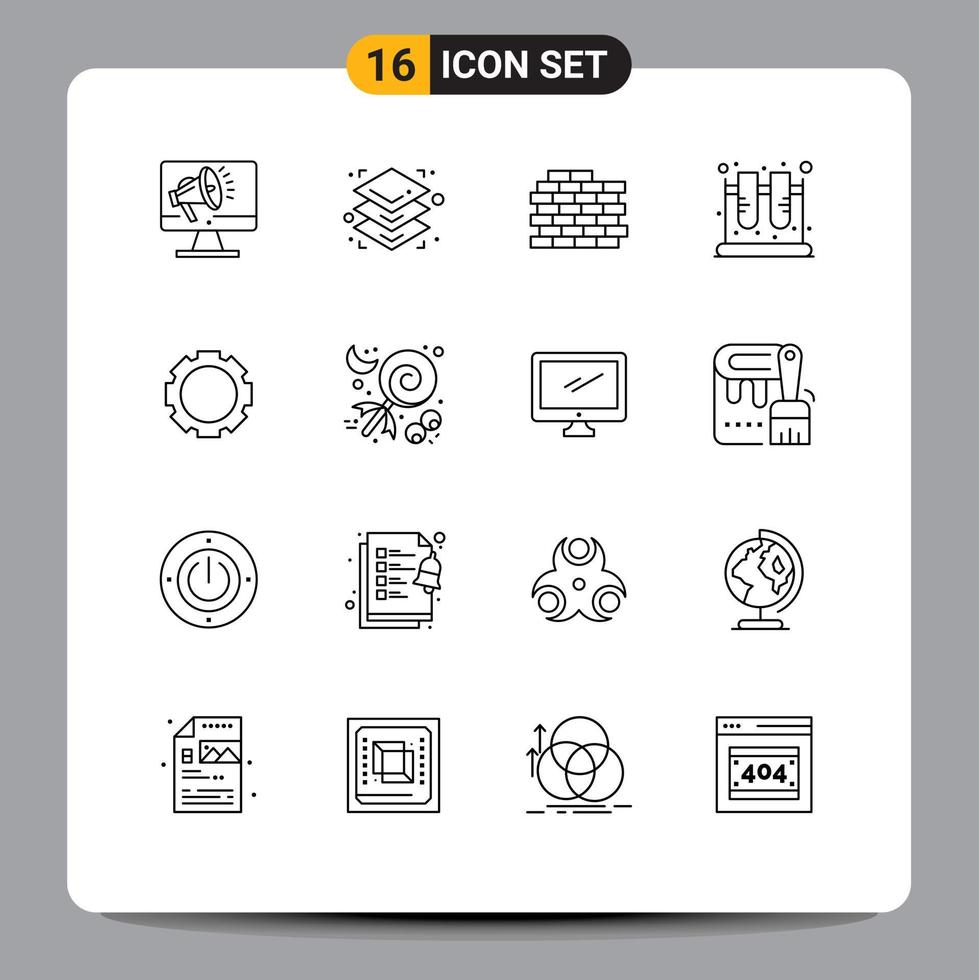 Pack of 16 Modern Outlines Signs and Symbols for Web Print Media such as setting test wall science jar Editable Vector Design Elements