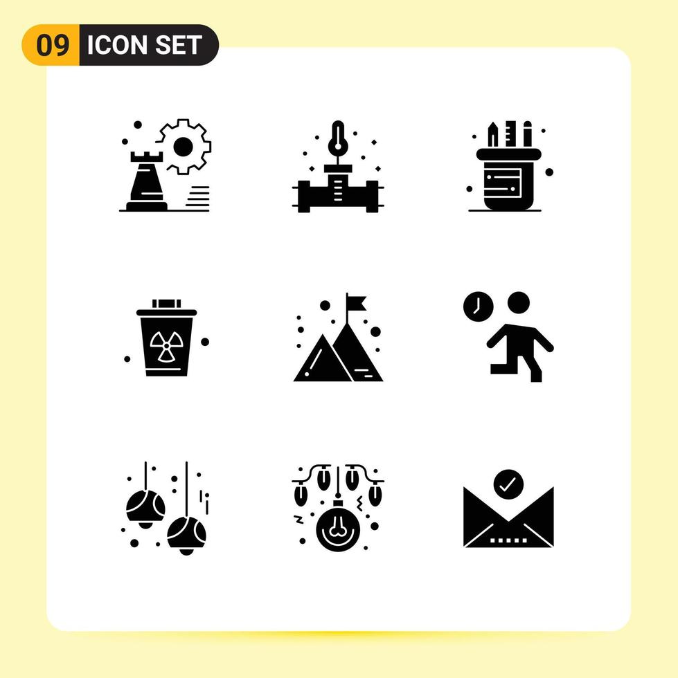 Set of 9 Vector Solid Glyphs on Grid for company trash temperature pollution environment Editable Vector Design Elements Free Vector and Free SVG