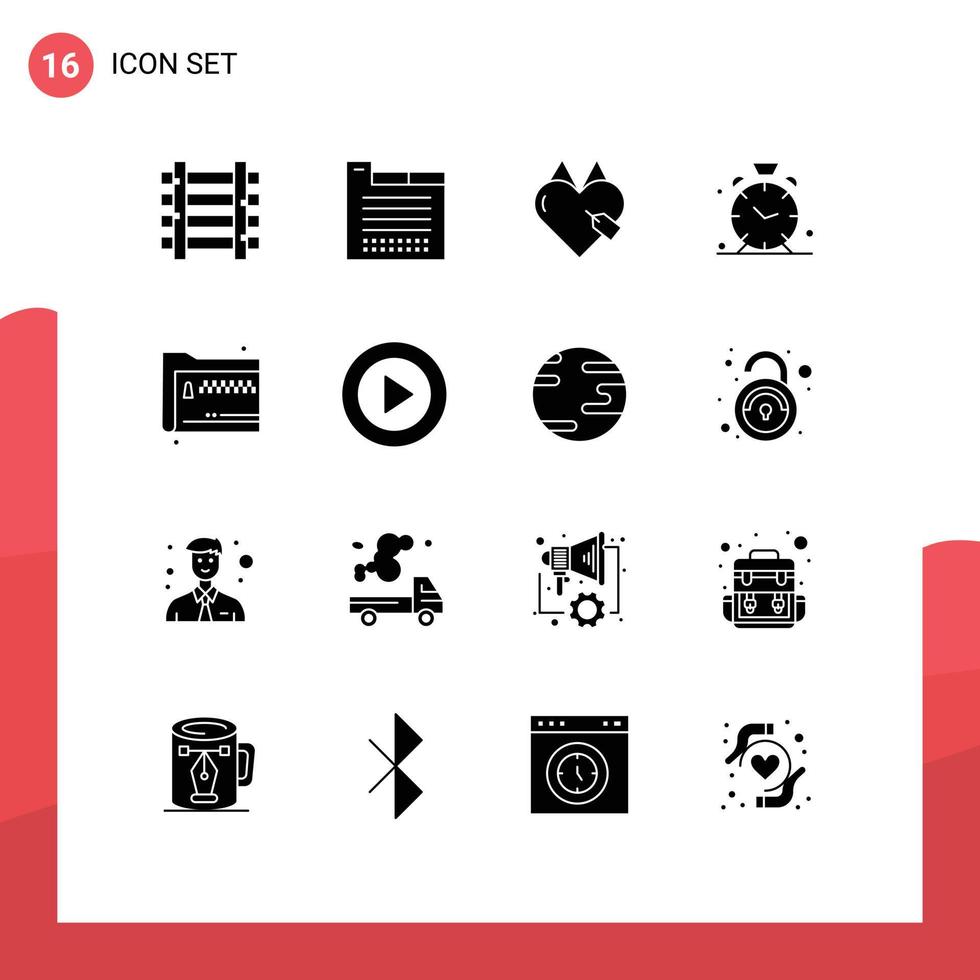 16 Solid Glyph concept for Websites Mobile and Apps folder time e commerce clock favorite Editable Vector Design Elements Free Vector