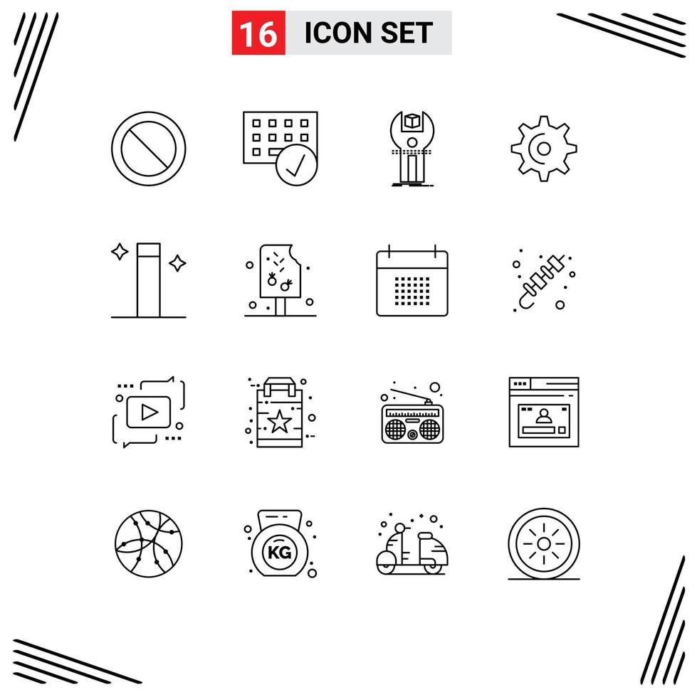 Modern Set of 16 Outlines Pictograph of magic spin sdk gear programming Editable Vector Design Elements Free Vector