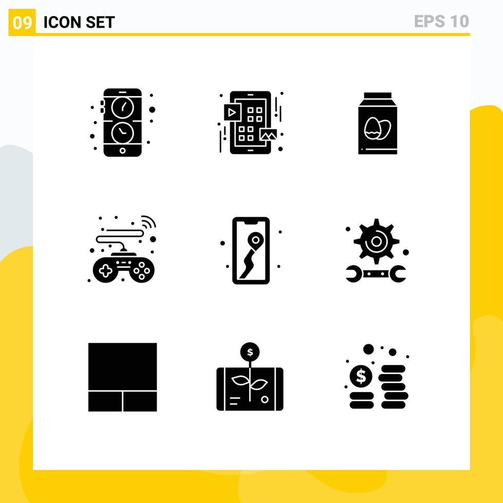 User Interface Pack of 9 Basic Solid Glyphs of map mobile egg smart controls Editable Vector Design Elements