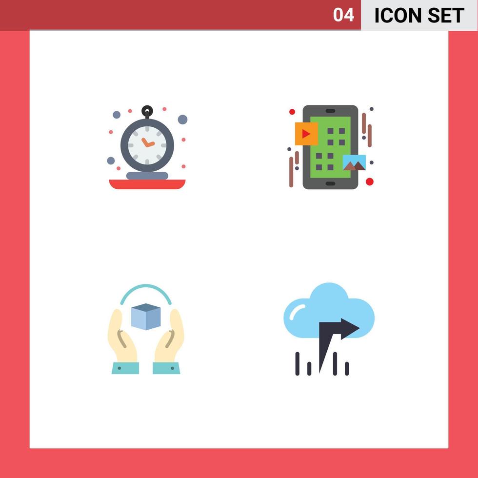 4 Universal Flat Icons Set for Web and Mobile Applications alarm care retro menu handle Editable Vector Design Elements