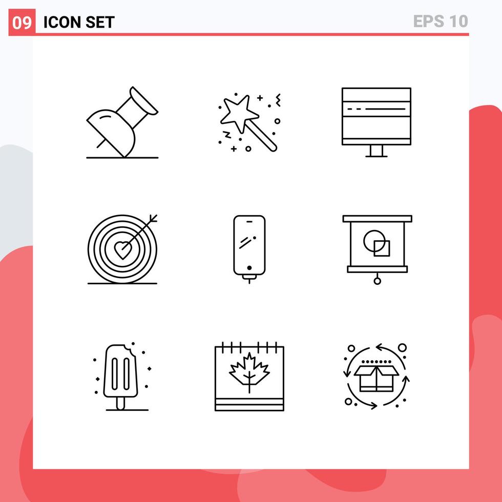 Set of 9 Modern UI Icons Symbols Signs for smart phone wedding computer target heart Editable Vector Design Elements